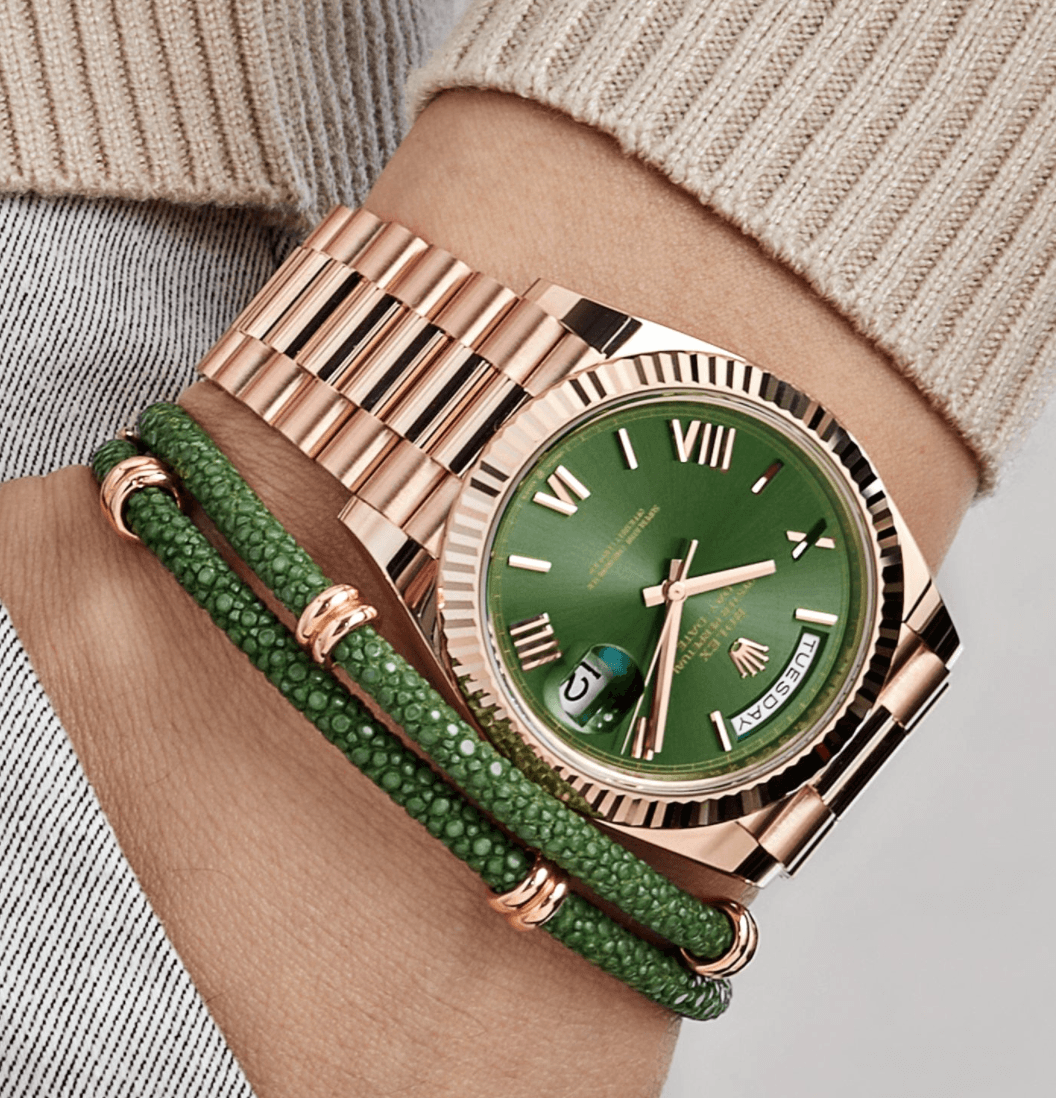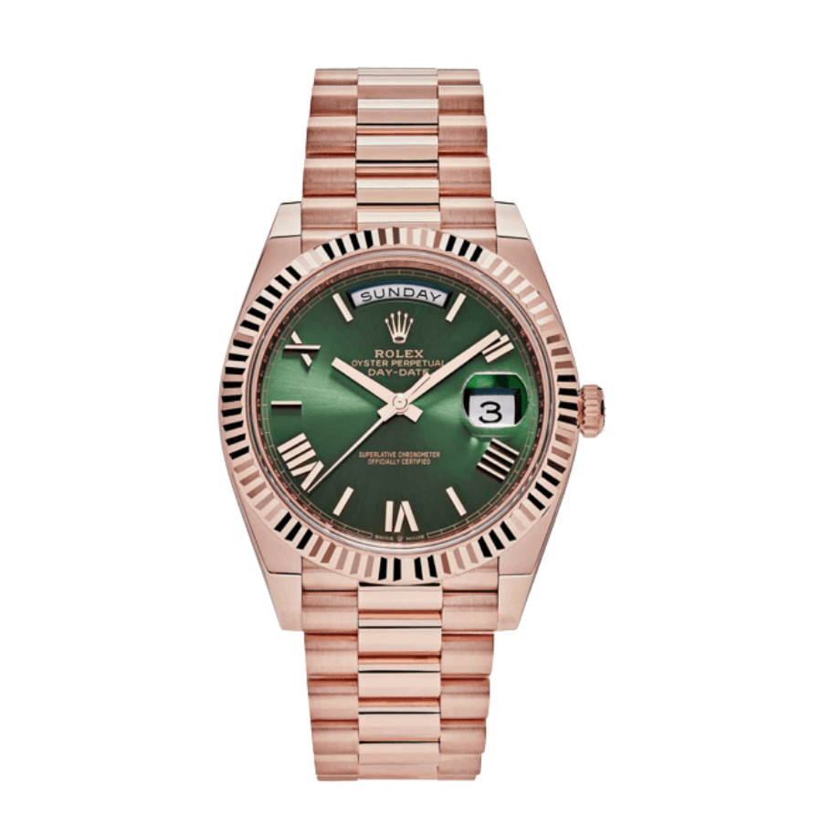 Day-date rose gold olive green dial 40mm