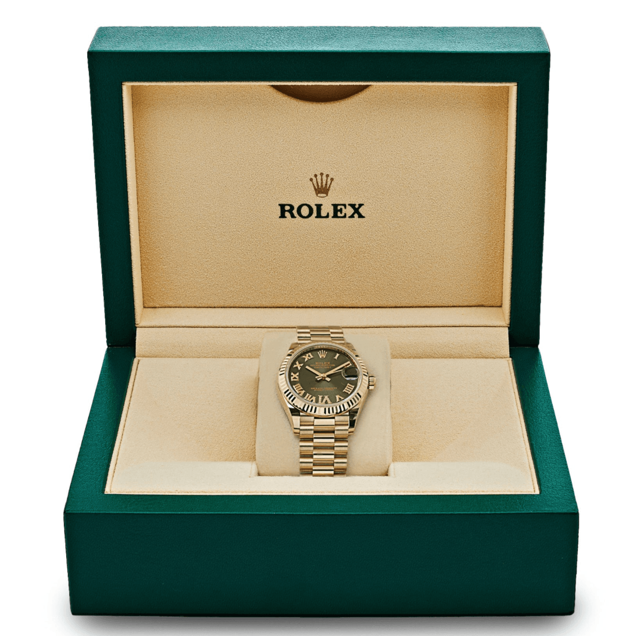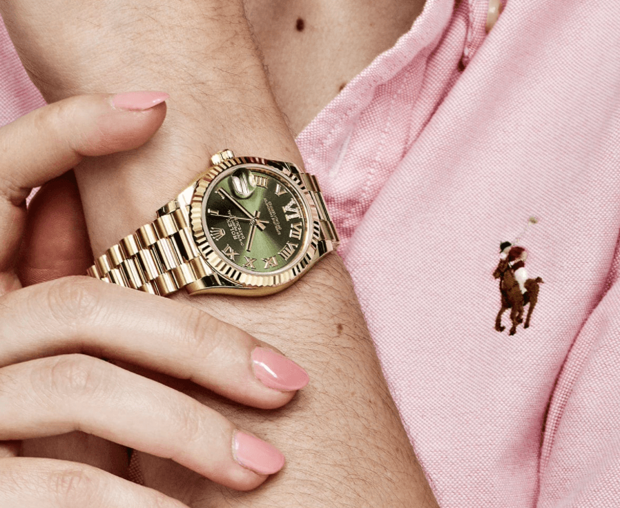 Date just ladies yellow gold diamond green dial 31mm